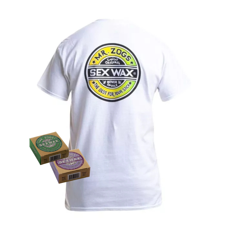 Koszulka SEXWAX Biała + 2 kostki wosku – bawełniana klasyka do surfingu i na co dzień