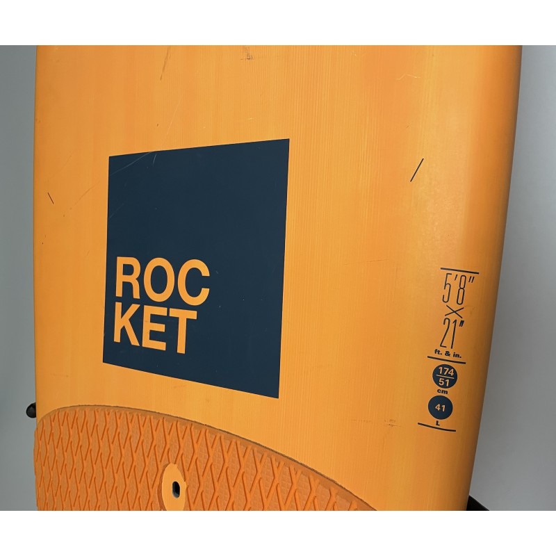Używana deska F-One Rocket Surf Foilboard – 5'8". Deska w stanie dobrym. Na zdjęciach widać drobne zadrapania i otarcia na nose, tailu i bocznych krawędziach deski. To typowe ślady codziennej eksploatacji — deska jest w pełni funkcjonalna i gotowa do akcji. Niewielkie defekty są minimalne i nie wpływają na bezpieczeństwo ani osiągi deski.
