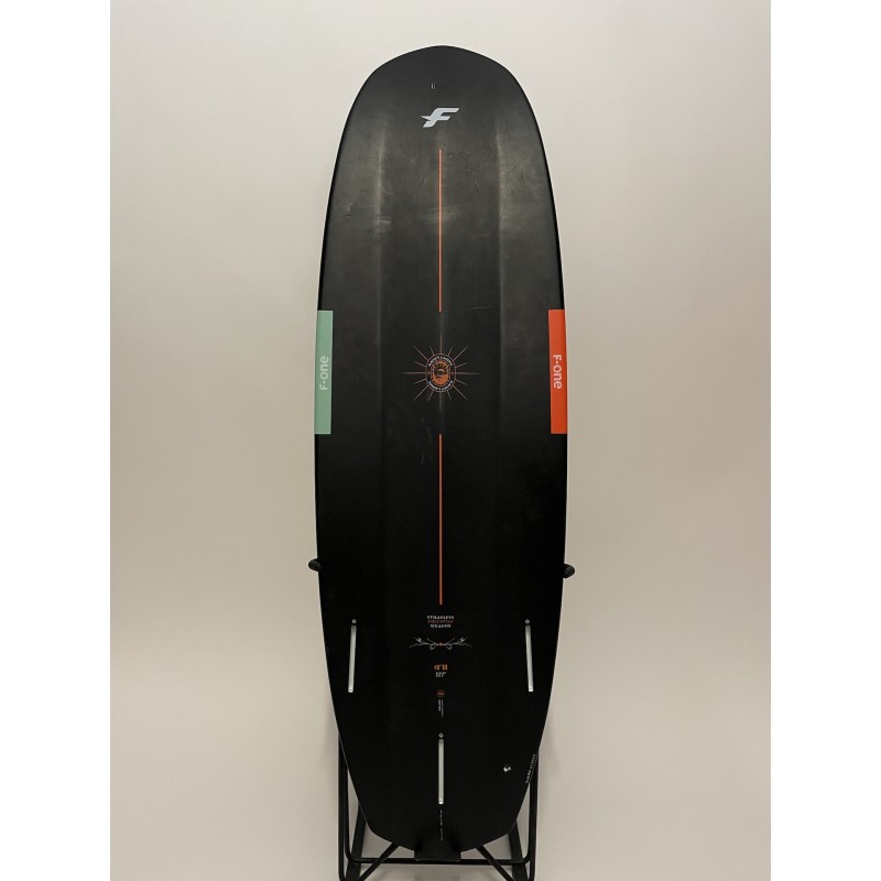 | Konstrukcja | Najlżejsza deska strapless F-ONE – tylko 2,7 kg. Super cienka budowa karbonowa i płaski rocker z głębokimi kanałami dla pełnej kontroli prędkości i łatwych lądowań. |