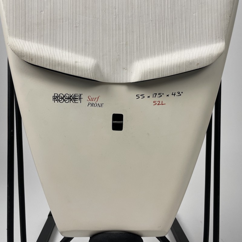ROCKET SURF PRONE zapewnia łatwe padlowanie i szybki start do lewitacji. Jego unikalny, zaokrąglony kształt dna w przedniej części deski, w połączeniu z szerokimi fazowaniami i wąskim spodem, minimalizuje opór, umożliwiając szybkie i płynne nabieranie prędkości przed startem. Stepped kick na rufie pomaga w płynnym oderwaniu od wody oraz zmniejsza opór podczas lądowań, co jest idealne przy uderzeniach w pianę.