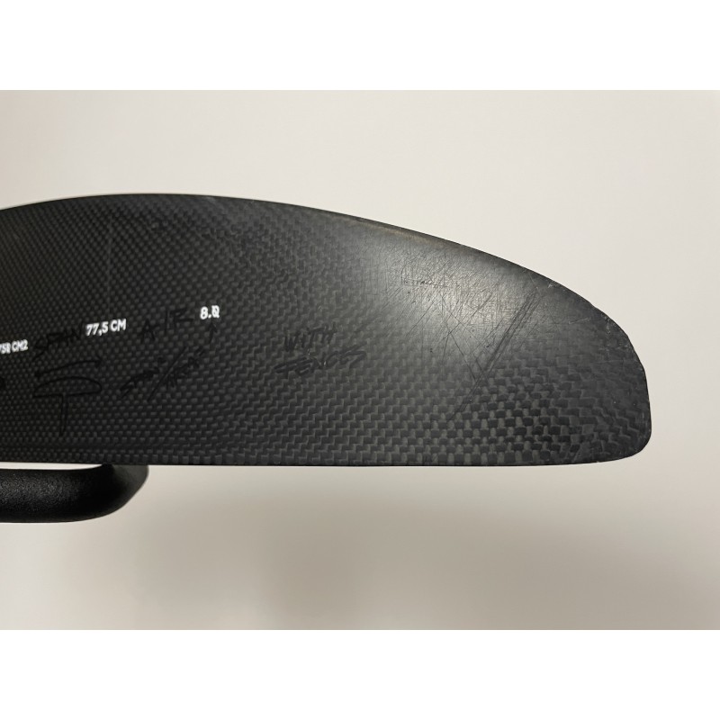 Używany Foil F-ONE SK8 HM 750 w stanie dobrym. Foil posiada jeden niewielki uszczerbek na lewym tipie oraz widoczne ślady użytkowania w postaci rys i otarć widniejące na powierzchni folia. Mimo to samolot wciąż gotowy i sprawny na kolejne sesje w wodzie.
