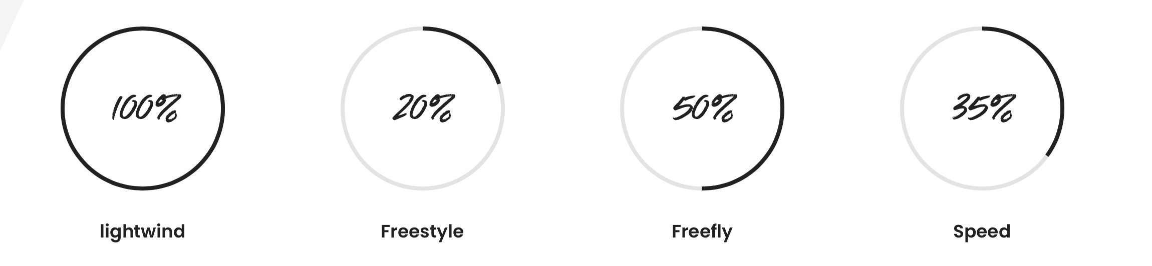 ALUULA na poprzeczkach redukuje wagę i opór, poprawiając właściwości freefly, manewrowość i łatwość prowadzenia. Materiał TECHNOFORCE™/D2 gwarantuje wytrzymałość tam, gdzie jest to potrzebne – 66g na tylnej krawędzi i 52g w pozostałych częściach – zapewniając optymalny balans między osiągami a trwałością. CWC wyposażono w wymienny system uchwytów, który pozwala dostosować skrzydło do własnych preferencji – do wyboru są miękkie, hybrydowe lub sztywne uchwyty, a także możliwość montażu węglowego boomu. Zoptymalizowane rozmieszczenie pasków pozwala na użycie jednego boomu do wielu rozmiarów i modeli skrzydeł w całej gamie F-ONE. CWC jest bardzo zwrotne i łatwe w przekładaniu na wodzie, dzięki czemu czujesz się jakbyś używał skrzydła o powierzchni 5 m². Jeździj komfortowo i swobodnie z STRIKE CWC – to prawdziwa rewolucja w dniach ze słabym wiatrem.