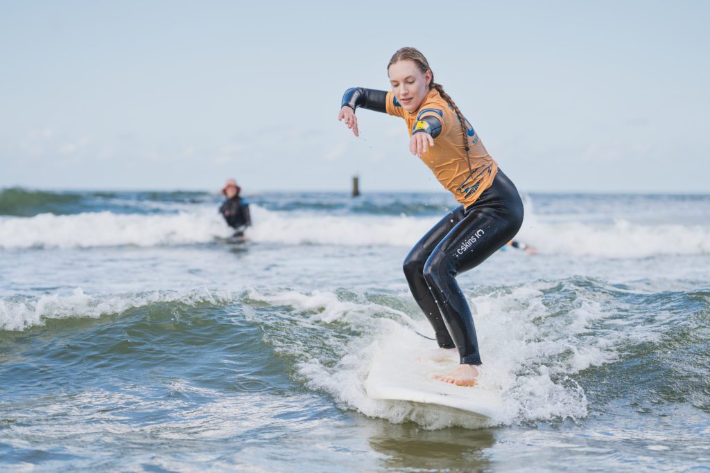 Surfing to fundament naszych spotkań. Codziennie prowadzimy zajęcia surfingu, które są dostosowane do poziomu uczestników. Uczymy od podstaw osoby, które pierwszy raz trzymają deskę w rękach, a bardziej doświadczonym surferom pomagamy rozwijać technikę, balans i pewność na fali.